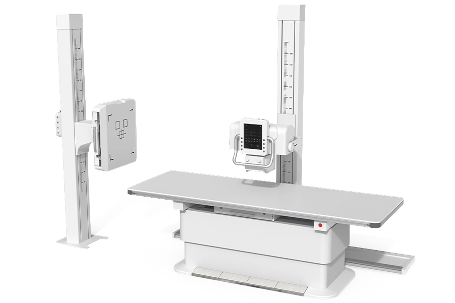 Large four-way floating tabletop extends radiography coverage to facilitate technologists' operation.